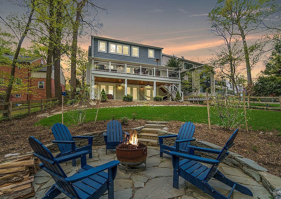 A++ SPECTACULAR, CONTEMPORARY CRAFTSMAN WITH MAGAZINE WORTHY CHEF’S KITCHEN + SCENIC OUTDOOR LIVING SPACES in the coveted Woodmoor neighborhood. 230 Whitmoor Terrace is set on a picturesque lot backing to sweeping panoramic wooded views, perched high above the verdant Northwest Branch-Rachel Carson trail system, and complemented by the tranquil sounds of the flowing creek below and songbirds above. Inside and out, it is a phenomenal place to enjoy with loved ones + friends socially or when desiring space independence. MULTIPLE OUTDOOR LIVING SPACES provide ideal spots to gather, play, relax, dine or entertain. A composite deck spans the entire rear of the home, and is accessible by two sets of French doors off the ENORMOUS OPEN CONCEPT KITCHEN + LIVING ROOM. An equally large patio with beautiful tongue in groove wood ceiling, ties the walkout finished lower level to the fenced yard, fire pit, and other outdoor spaces. A covered front patio is an ideal place to greet the morning or stargaze. There is a large shed for your favorite sporting and gardening equipment. Simply put, the outside spaces will delight even the most discerning two and four legged creatures. EQUALLY IMPRESSIVE, this upscale but highly approachable, spacious + functional 5BR/4BA home is deceptively large when you come inside. REDESIGNED + EXPANDED IN 2018, the craftsmanship + thoughtful design of every detail of this home are truly awesome. Featuring red oak flooring throughout, abundant natural light in every room, and gorgeous natural views out of many windows, the lines between the interior and exterior are interconnected. MULTIPLE FUNCTIONAL SPACES ACROSS 3 LEVELS are ideal for living, cooking, entertaining, dining, hosting overnight guests, relaxing, curling up in front of a fireplace, reading, watching movies, creating music, crafting, playing games, learning, working, or working out. The PROFESSIONAL GRADE KITCHEN features quartz counters, a large island that seats 5-6, high-end stainless steel appliances, a six-burner gas range + hood, wall ovens, and wrap around counter/prep space. Seamless flow from the open concept kitchen to both the outdoor and indoor living rooms are accentuated by tons of natural light through expansive windows and two sets of French doors. A gas fireplace is flanked by custom built-ins and expansive windows. There is a wood fireplace in the dining room, with ample space for a large format dining table, and outdoor views on three sides. A MAIN LEVEL GUEST SUITE + MUDROOM round out the main level. UPSTAIRS, there is a very generous sized OWNER’S SUITE with huge picture windows overlooking the woods, two walk in closets, and a tastefully designed bathroom with tiled shower, dual sinks and water closet. Three additional bedrooms – each with great closeting – and another nice bathroom round out the sleeping level. THE WALKOUT LOWER LEVEL is equally impressive, with space for a home gym, home offices, additional family living room or theater, music/hobbying space, laundry room and several storage rooms. CONVENIENT TO DOWNTOWN SILVER SPRING. Solid public and private schools nearby. Walkability to trails, Trader Joes, and retail. THIS IS DEFINITELY A UNIQUE OPPORTUNITY TO OWN A TURNKEY HOME IN A WELCOMING NEIGHBORHOOD, THAT BLENDS INDOOR + OUTDOOR LIVING WITH THE UTMOST STYLE + COMFORT.