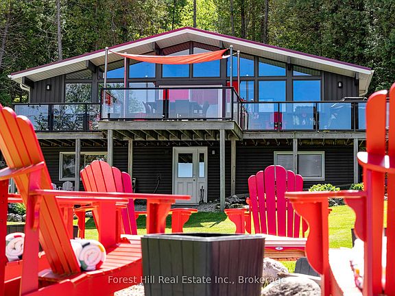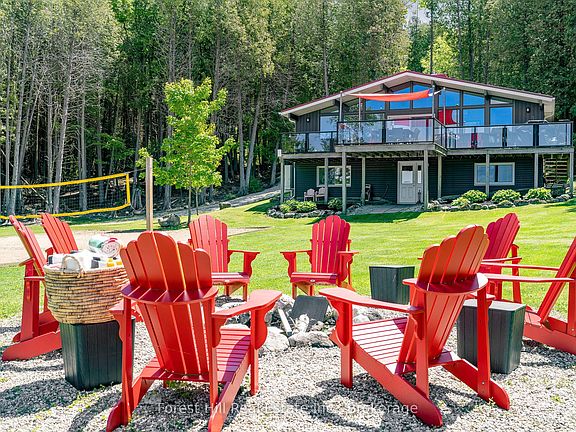 Set on 1.28 acres with 210 feet of private shoreline, this west-facing Lake Eugenia property delivers stunning sunsets and all-day sun. The spacious, double-lot parcel provides both seclusion and room to play, while the 4-bedroom, fully furnished walkout cottage is ready for immediate enjoyment. Recent upgrades efficient heating and cooling, refreshed siding and windows, a durable metal roof, and a feature fireplace blend modern comfort with cottage charm. Outdoors, the main deck and custom sail shade create the perfect space for entertaining, while the private dock invites endless water activities. The property is also STA-licensed, offering strong rental potential when not in use. Just minutes from Beaver Valley Ski Club, the Bruce Trail, golf, and the new Markdale hospital, this is a true four-season escape within 90 minutes of Kitchener-Waterloo and under two hours from Toronto. For those seeking lifestyle and investment together, this is lakeside living at its best.
