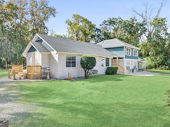 230 Yacht Road offers a rare combination of versatility, privacy, and waterfront access-no HOA, just coastal living on your terms. Set on a half-acre lot along a tidal creek that reaches deep water in under half a mile, this property includes a private dock, making it ideal for boating, fishing, and exploring the Georgia coast. Inside, the home features 3 bedrooms, 2.5 bathrooms, and a flexible layout full of possibilities. A bonus room functions as a fully operational commissary kitchen, while a separate, oversized space-previously used as a beauty salon-includes its own private entrance, offering potential for a home business, studio, or conversion into a second suite. A convenient half bath nearby could easily be expanded into a full bath, creating a massive master suite. The kitchen is truly expansive, offering abundant cabinetry and prep space, perfect for anyone who loves to cook or entertain. A wood-burning stove adds charm and provides functional heat during cooler months. The home also includes new windows, built-in bookshelves, a wet bar, fruit trees, ample storage throughout, and a separate outbuilding for additional storage needs. A large parking pad is ready to accommodate a food truck, RV, or extra vehicles, and a fireproof safe conveys with the property. Whether you're looking for a multi-use space, an income-producing opportunity, or a peaceful waterfront retreat, 230 Yacht Road delivers something truly special.