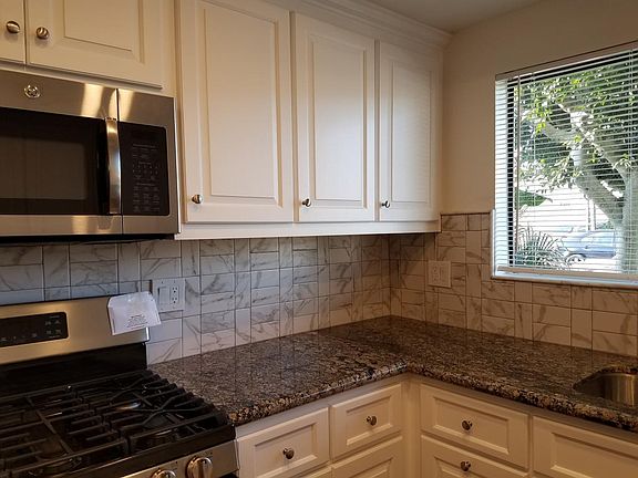 * Very private 2 story, 3 BR 2.5 Baths Town house, End unit, * All New top grade custom made beautiful Kitchen Cabinetry and * Beautiful Granite Counter top with * Lots of Large and regular size drawers, large counter top space, * Double door pantry cabinet, matching GE Dishwasher, * New GE Oven and Cook Top Set, * Matching New GE Microwave oven, * Recessed lighting. * New master shower room with beautiful tiles, * All Laminated wood floors throughout. 3 Bed rooms in upstairs , * Large master bed room with Walk-in closet, * Large Balcony for each bed room with privacy enhanced wood rails * Attached 2 car private garage, * Large (50 gal) newer water heater. * Private front Gate Entrance with stucco fence, * Extra side space in front Patio area, * Convenient to Fwy and shopping, * Non smoking, * Pet allowing Negotiable Water, Trash Gardening paid by Owner.