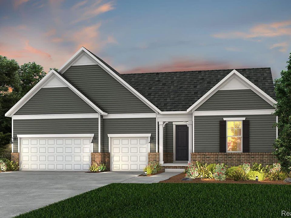 To Be Built with move in October-December 2026. Prepare to be amazed at Michigan’s newest active Del Webb community, Kensington Ridge. Thoughtfully designed for homeowners aged 55 and better who seek a fulfilling, low-maintenance lifestyle. Set in the picturesque city of Milford, residents enjoy quick access to charming local boutiques, delicious restaurants, and the natural beauty of Kensington Metro State Park. The open, Renown ranch-style floor plan welcomes you with a bright and spacious gathering room outfitted with a stone floor to ceiling fireplace with a view of the extended covered rear deck and seamlessly flows into the chef-inspired kitchen, ideal for both entertaining and day-to-day living. Built-in appliances, a large island, with an oversized pantry, the kitchen offers ample space for cooking and storage. The Owner’s Suite serves as a tranquil retreat, offering serene rear yard views, large walk-in closets, and a luxurious ensuite bathroom complete with abundant storage and an oversized shower. The popular flex room offers an extra space for a work office or hobby enclosed with glass french doors Luxury design and funtional touches include crown molding and upgraded trim throughout, laundry cabinets and a boot bench in the mudroom off the garage. The community also boasts incredible amenities, including a 16,800 sq. ft. clubhouse featuring a full gym, swimming pool, and courts for tennis and pickleball, all with scenic views of a peaceful, motor-free lake—perfect for relaxation and recreation.