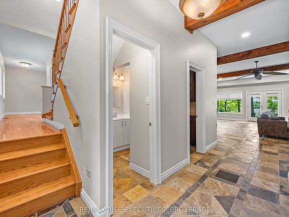 Million-Dollar Views, Endless Potential 22.5 Acres on South Lake. An extraordinary opportunity awaits with this sprawling waterfront estate, offering over 800 feet of west-facing shoreline on beautiful South Lake. Just 10 minutes from Gananoque, this unique property delivers unbeatable privacy, breathtaking sunsets, and the chance to create your dream retreat. The house features over 6000 sq ft of living space with 7 bedrooms, 6 bathrooms, private master suite, beautiful office and grand living room. Tucked away among a diverse landscape of hardwoods, softwoods, granite outcrops, and abundant wildlife, the setting is nothing short of magical. Follow the well-maintained stairs down to a charming rustic separately deeded cabin right at the waters edge - perfect for peaceful getaways or summer afternoons by the lake. Recent updates to the home include: new septic system, new furnace, new a/c, water softener, washer/dryer, gas stove, new blinds throughout, new flooring in all bedrooms and freshly painted inside and out. This is more than just a property, its a lifestyle, a sanctuary, and a once-in-a-generation chance to own a true piece of Canadian landscape.