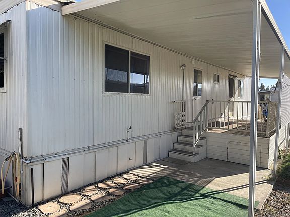 Welcome to Imperial Escondido Mobile home senior park with 2 recreational pool areas and clubhouse facilities. Our home is convenently located between the two areas for easy access to both. Built in 1970, this doublewide Hillcrest Hallmark model offers a spacious living room and 2 bedrooms with each having their own on-suite bathroom. Their is a covered front porch along with a covered 2 car carport that has a wheelchair access ramp. Their are also 2 storage sheds that convey with the sale. There is room on the side and back for your own outdoor seating area next to a pair of Citrus trees.