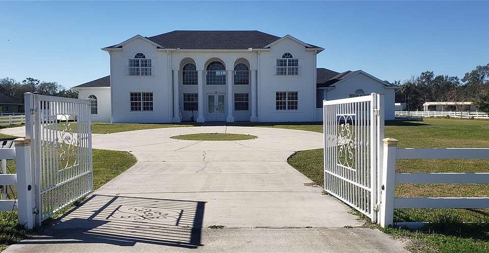 Price drop! Beautiful luxury home!!! Almost 3 acres and a huge barn/workshop. No HOA. This home is where luxury meets complete privacy! This custom built pool home offers almost 5,000 sqft of living space, 5 spacious bedrooms, 3 full baths and 2 half baths. As you walk in the front door, you're greeted by a grand staircase with over 20 foot high ceilings for a true wow factor! This home opens up to a formal living room that is big enough for the whole family and overlooks the gorgeous pool. The kitchen has granite countertops, high end stainless steel appliances, and tons of cabinetry for all your cooking needs! The living room has tons of natural light, 20 foot high ceilings, and is perfect for a night in with the family. This home is also equipped with a bonus room that is over 30 feet wide with a full bar, pool table, and recliners, massage chairs, custom ceilings that opens up to the pool. This home has 2 owner suites as well with one being on the main floor and the other being upstairs! The main owner's suite has tons of natural light, it's own office, walk in closet(s), and an ensuite with dual vanities, soaker tub, and a walk in dual shower! And a TV to watch when you get ready in the morning or are relaxing in the tub. The upstairs also has the other 2 bedrooms and full bathroom. If you enjoy entertaining, then this pool and outdoor area is the perfect fit! The outdoor area offers a bar, covered lanai, screened in pool, spa, all while overlooking your almost 3 acres with no rear neighbors! The garage/workshop is 80x32! Whether you own your own business, collect cars, need extra storage, etc, the possibilities are endless with this workshop. The property is completely fenced and you can enjoy sunset views every night! This home also has a brand new roof and pool pump in 2022! You're also located in a very established community that's highly desirable while being close to all major highways and minutes from excellent shopping, hospitals, dining, theme parks and so much more. Also a cul-de-sac, so very little traffic. Call me today to schedule a private showing!