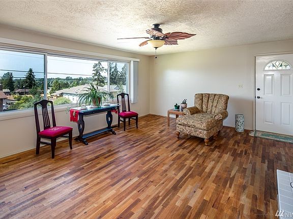 Easy level access to the back of the house from the dead end alleyway where there is a detached garage/shop and carport. Fully fenced yard with apple and pear trees, deck and gardening space. Enjoyable views of Bellingham while sitting in front of the fireplaces. Mid century home has abundant storage with built-ins and finished basement spaces and easy keep landscaping. Each level has it's own separate entrance. Close to amenities, Lake Whatcom and trails.