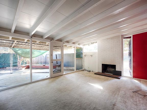 Rare Opportunity For Sweat Equity or New House! This mid-century modern home shows many of the problems associated with rental properties. It is dirty, the landscaping is almost non-existent, and a few weird things have been done to the home. However it is in a good well-taken-care-of neighborhood, has a basically good floor plan. Many of the windows are double pane windows in excellent condition. Each bathroom has a nice tile floor, a nice vanity, and a nice shower-over-tub. The kitchen has nice white cabinets and nice appliances. The cement slab floor inside the house seems to be in good shape (the original garage floor has a large crack). Most of the garage was converted into a den, leaving the driveway and a back yard carport for off-street parking. These issues will probably keep home flippers who want to clean, paint, and sell, from making an offer on the home. If you are ready to do more than clean and paint, this home could be your gold mine.