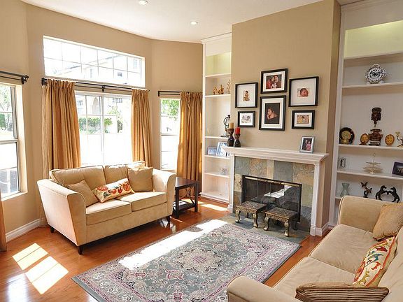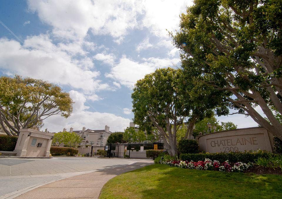 Updated 3 bedroom, 3 bathroom townhome in the highly sought after Chatelaine community. The light and bright living room with gorgeous wood floors and warm fireplace opens to a spacious, elevated dining area. Gourmet kitchen with granite counters, custom cabinetry and stainless steel appliances. Oversized master suite features soaring ceilings, fireplace and two closets (one standard mirrored closet and one walk-in). Master bathroom includes dual sinks and separate shower and tub. Two additional spacious bedrooms each with it's own bathroom. Additional storage space in the 2-car garage. This elegant townhome is located adjacent to a large grass area and is close to the main gate. Complex includes a community pool, club house and spa.
