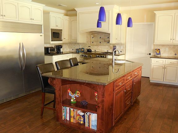 Exclusivity at its finest!! This gorgeous 2009 custom built home features an exquisite master retreat with a sitting area & a French double door exit to the patio/pool area, 4 large bedrooms, a large office, 4 bathrooms, laid out over 2.5 acres, with apx. 1.25 acres of unused land, and is zoned AG 20. Potential uses include horses/animals, dirt bikes, crops, fruit/nut trees, or building an additional home. The home boasts a gourmet kitchen with custom granite counter tops, built-in Frigidaire side-by-side refrigerator/freezer, a professional Bluestar chefs range, walk-in pantry, huge breakfast bar, and stunning views of the pool area. The master retreat also has an oversized living area, master shower with a rain-head & wall sprays, and a custom built jet tub. There is a custom built pool, jacuzzi, rock feature, along with a L-shaped covered patio in the rear; also a 30'x60' workshop with an office & private driveway, well water for irrigation, automatic gated doors, and so much more.