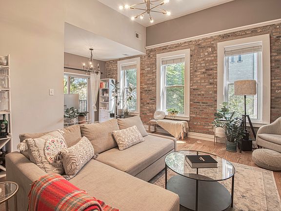 Perched on the top floor of a very quiet boutique, all-owner-occupied building, this one-of-a-kind 2-bedroom, 1-bath residence marries historic character with modern elegance. Originally built in the late 1800s, the home is set on an oversized corner lot and is flooded with natural light from south, east, and north exposures-a rare luxury in the city. Inside, exposed brick walls, 12-foot ceilings, and a stylish wood-burning fireplace create a warm, art-gallery feel-perfect for showcasing your collection. The open-concept living and dining space flows seamlessly into a chef-inspired kitchen, updated with granite counters, new stainless steel appliances, glass tile backsplash, under-cabinet lighting, and breakfast bar seating. The renovated bath is a retreat in itself, featuring marble and porcelain tile, a walk-in shower, elegant vanity, and chandelier lighting. Both bedrooms are thoughtfully designed: the primary easily accommodates a king bed and offers a full wall of custom-organized closets, while the second bedroom doubles beautifully as a guest room, office, or creative studio. A charming breakfast nook/den opens to a private side deck, fully immersed in leafy treetop views-your own urban escape. Additional highlights include oak hardwood floors, in-unit washer/dryer, private storage, landscaped common yard, and garage parking (included). The location is truly unbeatable. At Southport & Belden, you're steps from beloved neighborhood destinations: Pequod's Pizza, Sweet Mandy B's, Bird's Nest Tavern, artisanal coffee shops, and vibrant local boutiques. Parks and green space-including pickleball courts-are nearby, while Mariano's, cinemas, and convenient transit put daily essentials within minutes. Situated in the highly regarded Oscar Mayer Elementary district, this home offers both lifestyle and long-term value. A rare opportunity to own a home that blends historic Lincoln Park charm with modern sophistication-in one of Chicago's most walkable and desirable pockets. Pet friendly. Rentals allowed.