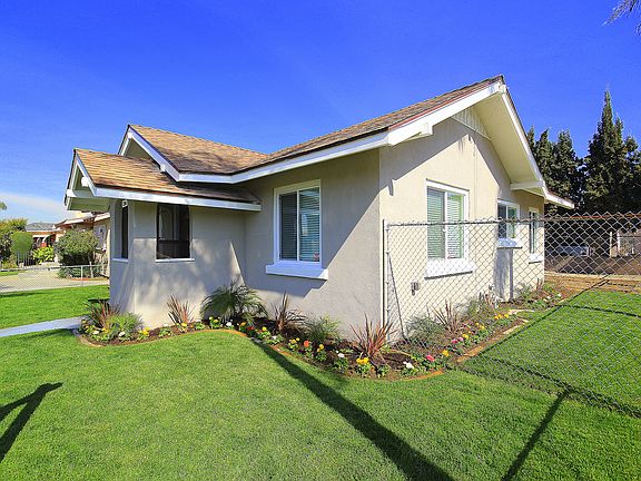 Completely remodeled home on a corner lot! Brand new green front lawn with colorful flowers, a fresh coat of new paint, new windows throughout and even a new roof! Entry through the new front door to a wide open floor plan which offers new laminate wood floors, recessed lighting and a large front window. The kitchen is completely redesigned and features tiled floors, new cabinets, granite counter tops, recessed lighting, a breakfast bar at the counter top and a spacious eating area. There are three bedrooms, all with wood laminate floors, custom window blinds and new baseboards. Two brand new bathrooms which each connect to a bedroom and one that is accessible through the hallway for guest access. The first bathroom features a custom built tiled shower with a glass enclosure, a vanity with sink, new tile floors and a new toilet. The second guest bathroom features a new shower with glass enclosure, tile floors, a vanity and a new toilet. The backyard offers a concrete patio area, a garden area which could be turned into a grass area or to enlarge the patio and a single car garage which is accessible through the gate. There is also room for an additional vehicle behind the gate. The electrical has been completely upgraded as well!
