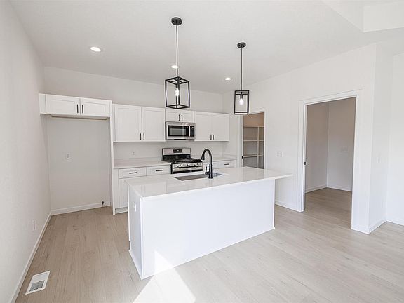 Center islandPartially exposed lower levelWalk-in closetQuartz countersSeparate breakfast nookLarge pantryLarge great room
