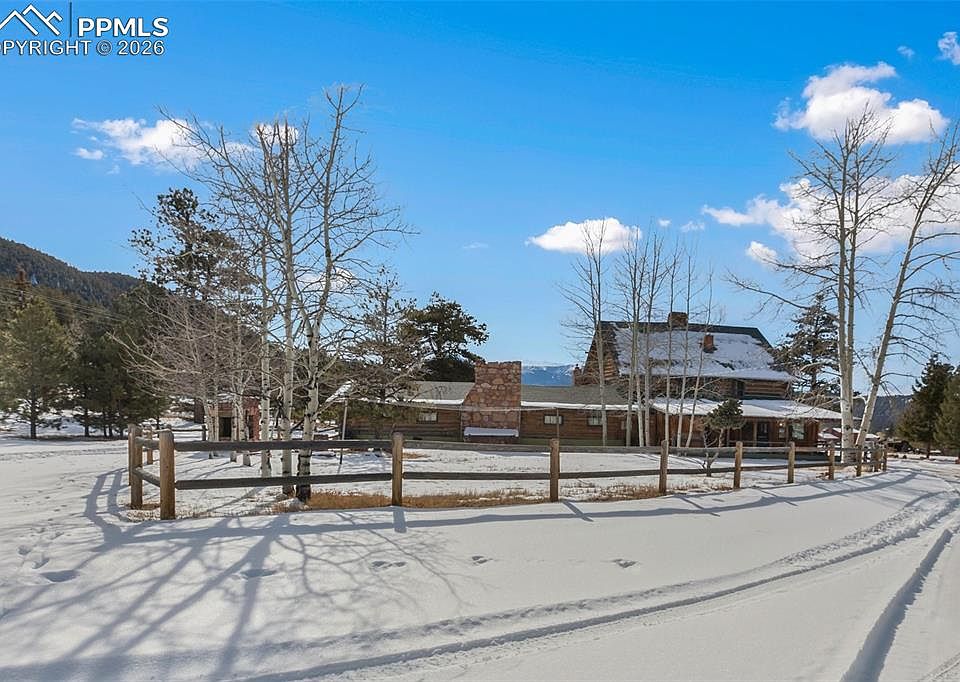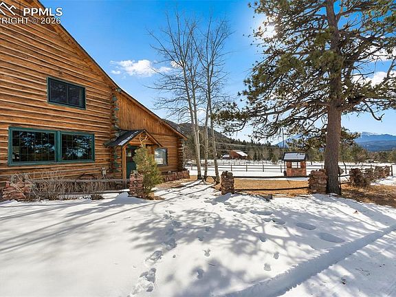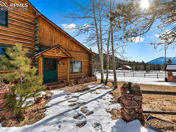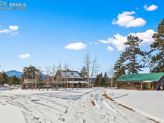 Welcome to 2300 W. Rampart Range Rd, once known as Herman's Youth Ranch before it was subdivided, in addition to the original "Mountain Home Furniture" The history of this epic log home tells us 2 potato farmers hand built the homes in 1936! This is a stunning mountain retreat setting in Woodland Park just minutes into downtown! The historic property includes two homes built in 1936 & owned by the Williams family for the past 50+ yrs. The 4.84 acre property features a 4,764 sq ft log main home + an additional 2 bedroom log cabin at 1,026 sq ft. The uses, availability & versatility for multi-generational living, rental income, or private guest accommodations abounds on this homesite! The property benefits from the convenience of both well water & public water, a rare & valuable commodity. The zoning is agricultural, horses can be grazed w/ the benefits of a beautiful grassy yard! Great location just minutes from Woodland Park amenities & amazing Pikes Peak views from the front of each home! This is a one-of-a-kind opportunity you won’t find again. The main home features original wood flooring, large wood fireplace located in the living room, w/ soaring ceilings & the loft overlooking from the upper level bedrooms. An adjoining living space, 714 sf ft closed-in solarium includes flagstone flooring & is heated with a gas converted insert stove, wall of windows capturing Pikes Peak views & Southern exposure! Another addtn to the home, the Annex room, was added to the main home encompassing 1800+ sq ft which was known as Mountain Home Furnishings & brings many fond memories for long time residents of the area. The opportunities are endless! 3 upper level bdrms served by a full bathroom, while the uppermost level, attic space, was finished for additional living space, including a 1/2 bath plumbed for a shower. A second cabin including 2 bds, 1 bath has been a long-term rental for many yrs. & is served by separate gas electric meters. Come see this exceptional opportunity!