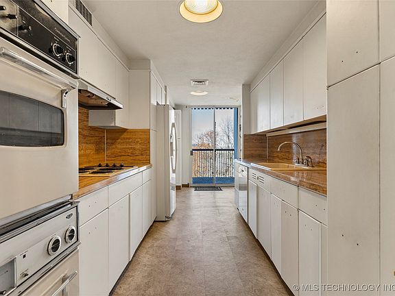 Two combined condos in luxury high-rise with south and west views of the river and the Gathering Place. These units include 3 bedrooms, 3.5 baths, and wrap-around terrace accessible from every room. Has not been on the market in over 40 years. In need of updating.
