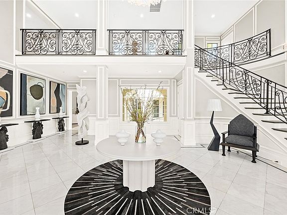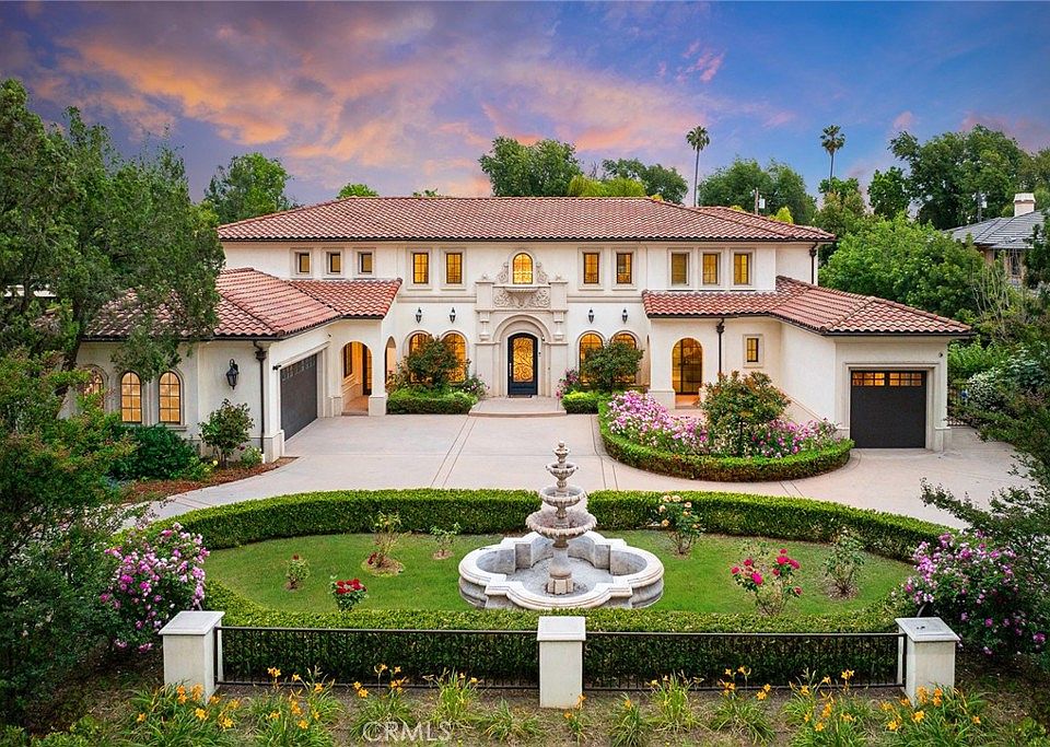 This sprawling, Mediterranean luxury estate sits on nearly an acre along one of the prettiest streets in Arcadia. The gated property has a park-like feel, with two stone fountains, two pools, landscaped flower beds, hardscaped walkways & patios, plus plenty of grass for Fido. Built in 2019, no expense was spared in the construction & design of this gorgeous 11,679 sqft home. Inside the front door, you'll find soaring ceilings, a dramatic staircase, beautiful chandeliers, custom millwork, marble tile & hardwood floors, plus huge windows that fill the space with natural light. The stunning chef’s kitchen features a Wolf gas range, paneled appliances, a glass tile backsplash, marble countertops and a massive island with seating for a crowd. There’s even a butler’s pantry with more storage and a bonus range, fridge & sink. The home is an entertainer’s dream, with bars and drink stations available in nearly every gathering space. Outside, there’s a unique central courtyard with a lanai, a fireplace and dining & dancing space on the stone patio. The smaller plunge pool in the side yard feels very private and includes a waterfall. The main pool & spa in the backyard is surrounded by a patio made for lounging, with a state-of-the-art outdoor kitchen just steps away. Back inside, the primary bedroom boasts a walk-in closet that looks like a boutique and a balcony overlooking the backyard. The spa-like marble ensuite includes a beautiful dual-sink vanity, a soaking tub and separate frameless glass shower. Each guest bedroom has an ensuite, and all of the bathrooms include marble or quartz countertops and custom-tiled showers. The private office off the foyer has coffered ceilings and a floor-to-ceiling walnut bookcase, and don’t forget about the home theater upstairs and the rec room off the pool deck, complete with a built-in sauna. This one-of-a-kind estate is zoned to excellent schools, with parks, golf courses and hiking trails close by, too. You’ll be just 5 min from all the shopping & dining along the 210 Fwy, 15 min from Pasadena and half an hour from downtown L.A.