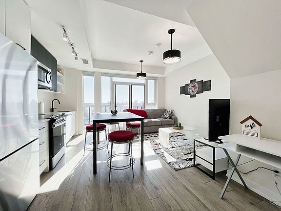 Furnished Rental 3-Bedroom Skyloft Condo in a Prime Location Experience the best of Toronto in our chic, modern SkyLofts home, featuring a stunning 1739 sqft terrace with unobstructed views of the city and lake! Convenience: Just a short walk to Walmart, Stockyard Mall, Canadian Tire, restaurants, cafes, and parks. Accessibility: Close to TTC and only an 8-minute drive from High Park. Size and Layout: Expansive 1739 sqft (1016 sqft interior + 723 sqft terrace) 2-story design with 9-ft smooth ceilings 3 bedrooms, 2.5 bathrooms Living Space: Spacious, bright open-concept living area Smart TV for enjoying your favorite movies Kitchen and Dining: Large, fully-equipped kitchen with quartz countertops Stainless steel appliances for all your cooking needs Bedrooms: Master bedroom with an ensuite bathroom and king-sized bed Two additional bedrooms, each with a king-sized bed All bedrooms offer comfortable mattresses and great city views Outdoor Space: Expansive wrap-around balcony with outdoor seating Stunning, unobstructed city and lake views Additional Amenities: Ensuite washer and dryer High-speed Wi-Fi with internet speed up to 1 Gbps One free parking spot plus additional free street parking Our SkyLofts home provides a luxurious and comfortable stay with everything you need for an exceptional Toronto experience. We look forward to hosting you and ensuring a memorable visit! **Short-term furnished rental is also available**
