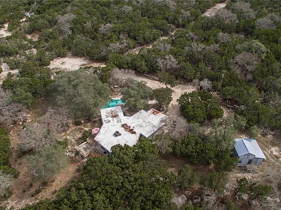 Quaint one story home on top of a hill with great hill country views. This creative 1950 SF home was moved to this 5 acre property in 1997 from old Lakeway. This property offers amazing hill country views, a relaxing, sparkling pool, and ultimate privacy. Endless opportunities to update and make your own or use this as a guest house and build your perfect dream home on the surrounding acreage. HVAC replaced 2 years ago. Deep well, low tax rate and very close to Hamilton Pool and Reimer's Ranch. Dripping Springs ISD. Live the country life while still being 20 mins to the Hill Country Galleria.
