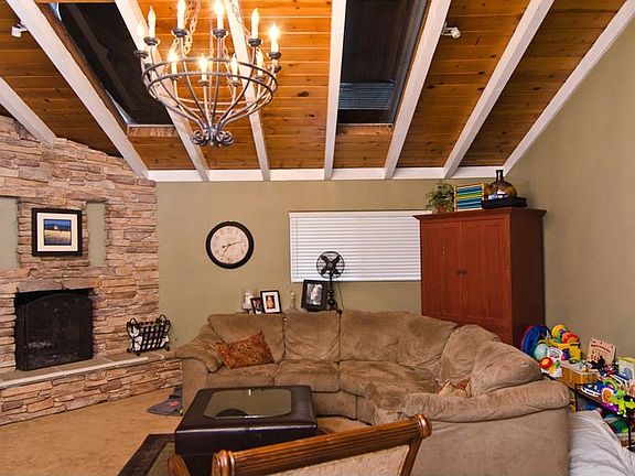 Unique single level home with high end amenities! Gorgeous living room features stacked flagstone fireplace, high exposed wood beam ceiling and spacious layout. Bright gourmet kitchen with granite countertops, center island, stainless steel appliances, and light wood cabinets. Backyard showcases beautiful landscape, awning over patio, built in fountain, and stone patio area. Also to note: formal dining room with fireplace, office area, inside laundry with built in cabinets, recessed lighting, and crown molding.