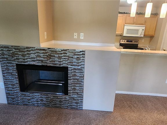 Olmsted Falls, Ohio 1st floor Condo with 2 bedrooms and 2 full baths. Master unit features a walk-in closet with lots of storage and lighted. Unit offers a large living room and dining area. New contemporary Linear flame fireplace with remote. Galley kitchen with bar area and cabinet storage. Appliances include, stove, fridge, microwave, very quiet Bosch dishwasher , washer and dryer. Large Pantry and 2nd full bath and second bedroom at the other end of the unit. With sliding glass doors and a large patio. Other features included Newer water heater, New furnace , New windows in master bedroom, Custom shades with shutters and brand new vertical blinds New window treatments, Master bath upgraded vanity and mirror and light fixture, Chandelier and breakfast bar lights added. Off street parking space and also designated garage space. Additionally, the owner storage space locker is down the hall from the unit.