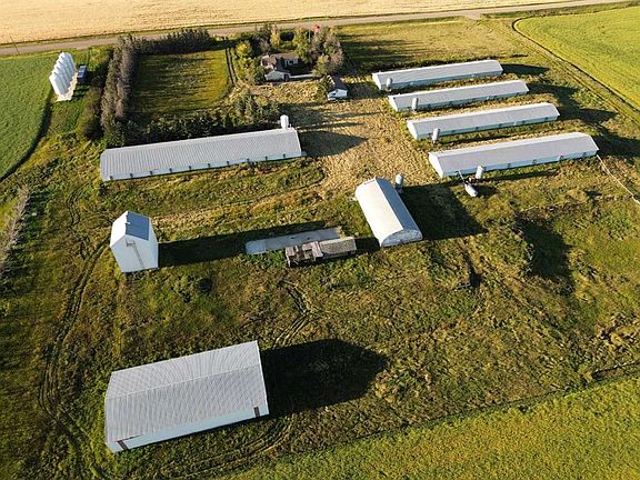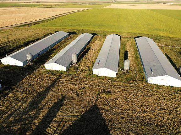 Bring your ideas of design and passion for work to this partially neglected diamond in the rough, situated on 11.14 acres this acreage is calling for someone to breathe life back into it, although lacking love, lots of potential exists on this property the home features four bedrooms two bathrooms, both four piece, two piece, toilet and shower in the sauna room area as well as an electric heated sauna room, non-operational hot tub area, and recreational space to fill with all sorts of games of your choice. Some updated flooring on the main level. Lots of room to revive and design as you see fit throughout the home. Outside a plethora of buildings tie the yard together, starting with an insulated 42’X24’ triple car garage with an 8.5 kW natural gas aspirated generator for farm power outage back-up. Quonset space measures. 80’ x 40’ offers in-floor heat, a small workspace and, a 14’ tall by 20’ wide powered overhead door. The last of the storage options is a 100‘ x 50‘ pole shed style machine storage shed with sliding door access at each end and a gravel floor line. Five older turkey barns are on the property that have not been accessed to determine their condition. The property also features. Six 1000 bushel hopper-bottom bins were utilized for feed distribution in each barn & one 1200 bushel hopper-bottom bin was also used for the same purpose on the newest of the five total once-utilized fowl barns.