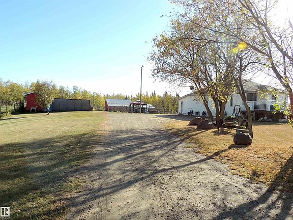 Get your horses ready for their new home on 10.2 acres in Austin Acres. Located just 12 km north of Gibbons, this property is set up with cross fencing, outdoor riding arena, red barn with metal roof/siding, 4 stalls, tack room and loft for hay, new water hydrant and watering bowl. Enter this 1200+sq ft country home and find a freshly painted mud room. A couple steps up is the kitchen with white cabinets, stainless appliances, corian counters and a cozy eating area. A french door leads into the living room, accented with original hardwood floors and electric fireplace. Primary bedroom holds a king size suite with electric fireplace. Enjoy the updated 4 piece bath and two more bedrooms on this level. Downstairs has a newly finished 3 piece bath, 2 more bedrooms, large laundry room and a cozy family entertainment area. Also included - chicken coop, metal workshop with wood heater and tool shed. An extra 10 acres of land behind is currently leased from the County and used for pasture for the horses.