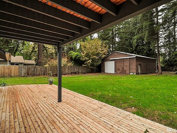 Sparkling home on majestic half-acre lot comes with an approx. 1200 foot shop. Family room off kitchen, dining room, new flooring throughout, gas heat and fireplace, jetted tub, appliances, new decking. RV station. Northshore Schools. 4th bdrm can be turned back into 2-car garage. Excellent commute location. If you want a clean, fresh home, big yard with gorgeous trees, and want the shop of shops, this is it. Morning coffee on your back deck will melt your cares away.