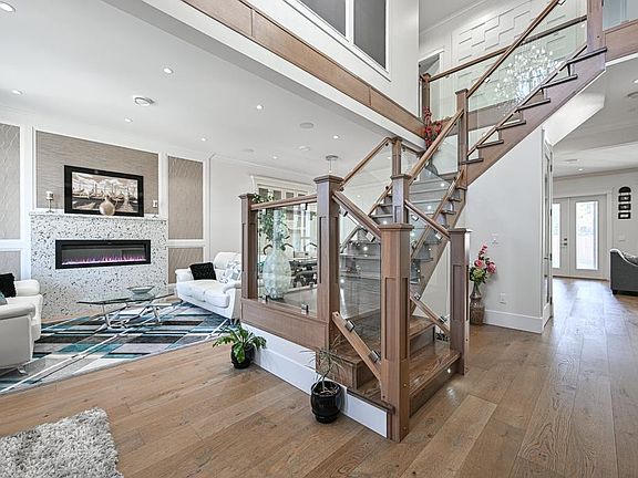 Exquisite custom-built mansion in South Surrey’s King George Corridor featuring dual driveways and triple garage with drive-through access. Main floor offers living, dining, family room, gourmet kitchen with spice kitchen, theatre room, and large covered patio. Upstairs includes 7 spacious bedrooms all with walk-in closets and 6 bathrooms. Legal 2-bedroom suite is a great mortgage helper. Radiant heat, A/C, and high-end finishes throughout. Prime location close to top schools, shopping, and all amenities.