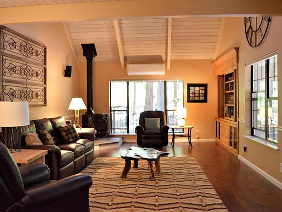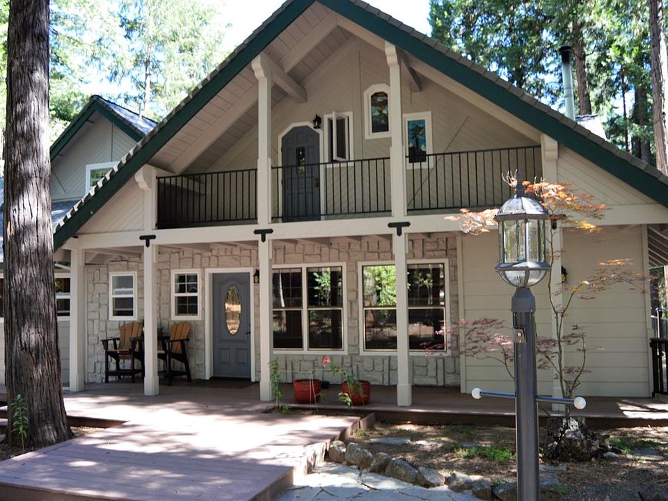 YOUR MOUNTAIN RETREAT AWAITS! This craftsman-built home is nestled among the trees and has been thoughtfully updated throughout. Stunning engineered wood floor. Spacious kitchen and dining with beautiful views of the trees. Kitchen has been upgraded with rich Knotty Alder Cabinets equipped with pull out drawers and separate island with sink and wine frig. Comfortable living room with loads of windows and built in TV unit wired for surround sound is just one of the many great places to kick back and relax. Ground floor master suite with fireplace has newly remodeled master bath and outside access to the back deck. Upstairs bedrooms have their own unique charm along with a full bath and exercise room and access to a quaint balcony for taking in the fresh mountain air. Your 5+ Acres has a 2-car garage with excellent loft storage RV storage with power and water woodshed and workshop! AND Low maintenance trex decking and enclosed gazebo. Seclusion with modern conveniences within minutes