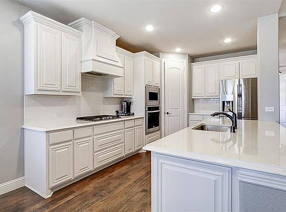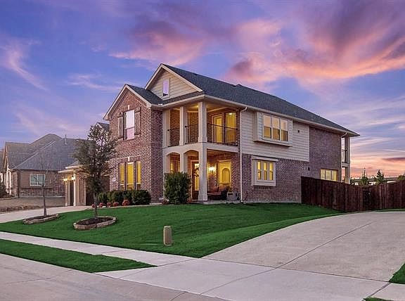 Beautiful Bloomfield built home in Lakes of La Cima!! Desirable Magnolia floor plan! 3 CAR GARAGE with epoxy floors! Great location in desirable Prosper ISD! Perfect for you & your family! Spacious floor plan includes 5 bedrooms, 5 FULL baths, including 2 master suites, game room, formal dining and study with large closet...could be 6th bedroom! Gourmet deluxe kitchen w built in SS appliances, Carrera Quartz, upgraded cabinets, back splash & walk in pantry! Hand-scraped hardwood floors throughout main areas, bay windows and cozy wood burning fireplace. Huge upstairs 2nd master suite features balcony and full bathroom with walk in shower! Oversize lot with secluded backyard and privacy fence!