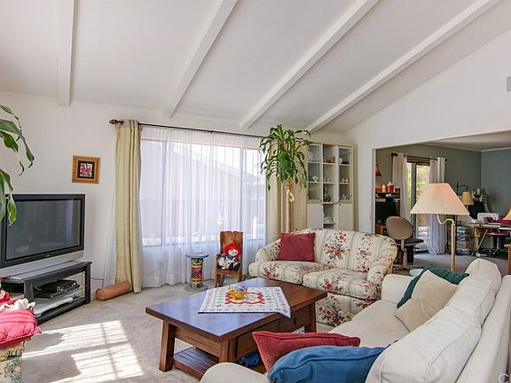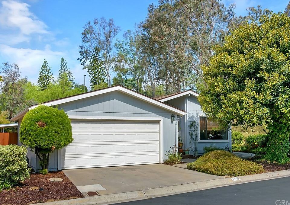 This wonderfully charming, 1824 sq. ft. single level home is one of the largest models at the end of a road in the beautiful community of Shadowridge Crossing. You own the land! There are no neighbors on two sides and you will enjoy its private location with a wooded, rolling hill behind. We love this home's cheery, light and open feel. The front of the home has a large, ivy-covered canopy tree next to a 2-car garage and driveway. Large, open living room features an expansive beamed, vaulted ceiling; lots of windows; a wood burning fireplace; dining area and a large eat-in kitchen. The kitchen has lots of windows, storage, bar area, two large pantries and side door with glass off of the breakfast area. Off of the living area is a room with sliding doors to the patio, which can be used as a bedroom. Easy to maintain wrap around yard with in-ground sprinklers. Laundry room for side-by-side washer/ dryer includes a deep laundry sink, storage and window. Two walk-in closets, air conditioning and central heat. Small enclosed side patio. Water heater is two years old. Community pool, spa, BBA area and children's play area in a beautiful, park setting with large mature trees. RV and boat parking available. Lots of guest parking. This is real property where you own the land. Home is manufactured on a permanent foundation with a 433a certificate. Very low HOA dues of $125/ mo. Popular San Marcos School District. Come see this fantastic property before it is sold!