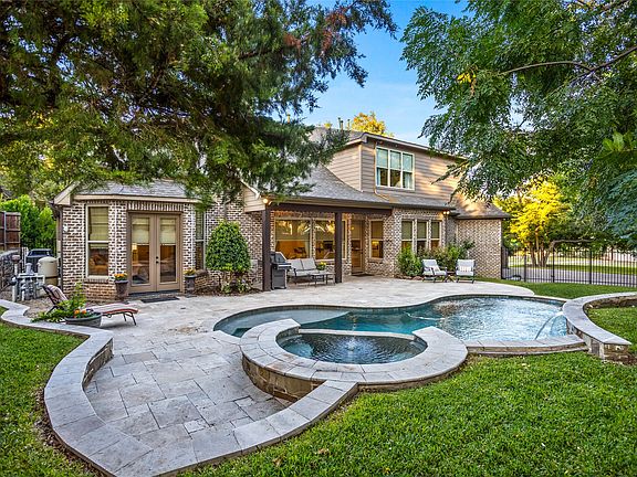 Welcome to a stunning private retreat in the heart of McKinney! Tucked into a quiet cul-de-sac in the highly desirable Village Creek subdivision with well-appointed living space on a lush, landscaped large semi corner lot. Inside, you'll find an ideal floor plan with multiple living areas, including a dedicated office, game room, and a cozy media room, perfect for movie nights or entertaining guests. The spacious living room showcases a stone gas fireplace and vaulted ceilings with wooden beams, while the chef-inspired kitchen boasts granite countertops, sub-zero built in fridge, double ovens, gas cooktop, a large island, and a walk-in pantry with etched glass door. The primary suite is a true retreat, featuring a sitting area with private french door pool access. The spa-like bath has separate vanities, garden tub, walk-in shower, and oversized closet. A secondary bedroom can be found downstairs with a generously sized walk-in closet, and two split bedrooms are upstairs creating added privacy, and both offer generous closets. An under the stair wine nook is tucked away by the living room, the large utility room has a built in sink, and smart home features round out the interior amenities. Step outside to your personal paradise with a a heated pool with a pebble tec interior finish, separate spa, and a tranquil water feature, all framed by mature trees, professional landscaping, and a covered rear patio perfect for relaxing or hosting. Additional highlights include a 3 car, rear facing, garage with epoxy flooring, extra parking, and access to community jogging trails, and fishing spots. Located in McKinney ISD, this home combines luxury, privacy, and convenience in one amazing package.