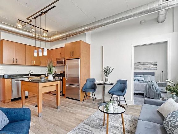 Welcome to Unit #111 at Adams Row a sleek, industrial-style condo featuring soaring 10-foot ceilings and oversized windows that flood the space with natural light. This thoughtfully designed 2-bedroom, 2-bath residence offers ideal separation for roommates or a luxurious work-from-home setup, with each bedroom boasting its own en-suite bath.