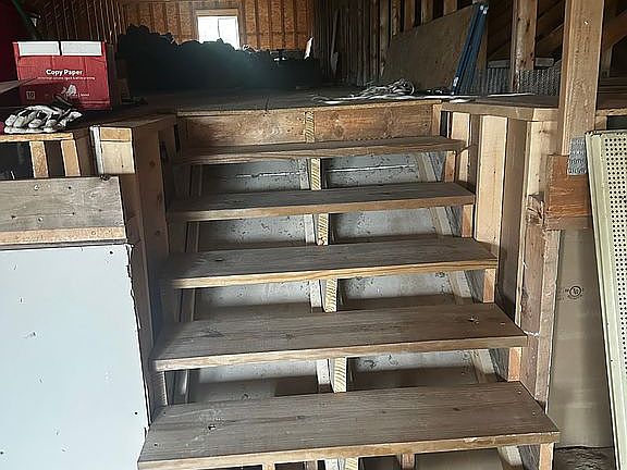 One has an opener perfect for storage of RVs or numerous other things. Three of the outside walls are 12 inches thick two are 40 feet long. One is 80 foot long. The shop has 14 foot side walls and the house has 10 foot high walls It has Hot Water Heat throughout garage and house. It is on separate zones so you regulate the heat in the house and the shop separately. The outside walls are EFIS which is a common type of exterior cladding known for providing superior insulation as well as aesthetic appeal. The upstairs area above the shop is 18 foot wide 8 foot tall ceilings and 60 foot long. You could do numerous things with that much space over the house. It has an area 18 foot by 20 foot, which would be perfect for a large bedroom or game room it also comes with a 10 foot snooker table. it has two sliding patio doors, one in the kitchen area, and one upstairs the kitchen cabinets are birch wood with soft closers, The island has a beautiful 2 inch thick walnut surface. The kitchen has tile floors and laminate throughout the house with the exception of the bedroom, which is carpet.