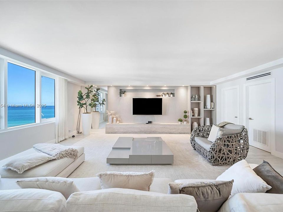 Experience the pinnacle of luxury living at The Roney Palace / 1 Hotel. This exquisitely combined residence unites units 1414 & 1415 into the most upgraded home in the building. Step inside to discover a custom Ornare kitchen and cabinetry, Miele appliances, Thorn Brock fixtures, and beautifully crafted Ornare closets. The kitchen features quartz marble countertops and a matching marble backsplash, complemented by elegant Artefacto furnishings throughout. Enjoy resort-style amenities exclusive to 1 Hotel, including 600 feet of pristine full-service beachfront, four sparkling pools, a state-of-the-art gym, rejuvenating sauna and spa, and an on-site coffee shop. Relax on your private terrace overlooking lush tropical landscaping and the serene pool deck below.
