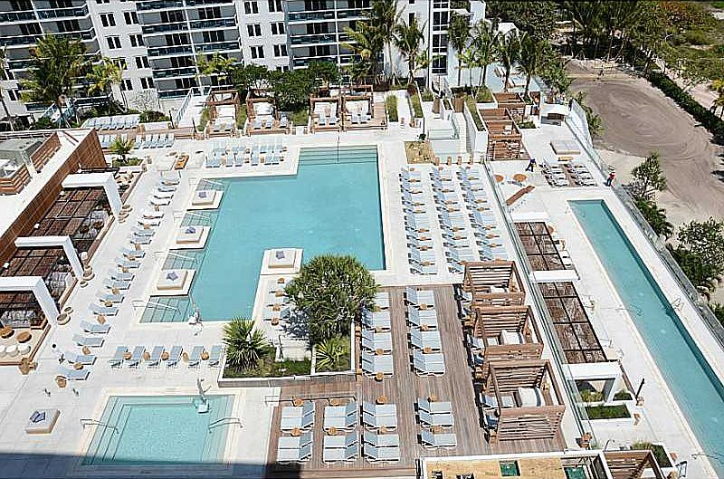 Roney Palace is a beachfront condo located that shares amenities with the 5 stars " 1 hotel South Beach" : 3 outdoor heated pools, a 20 people Jacuzzi, gym and 9 restaurant/bars.