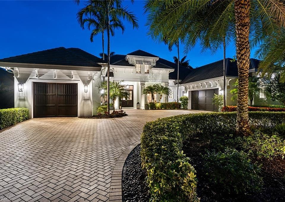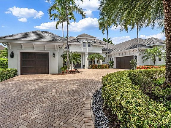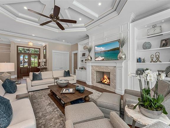 This home has NO damage from Hurricane! This custom built & designed Naples beauty has a tendency to WOW many! A CLASSY, COASTAL, COZY & CONTEMPORARY flair, + TURN-KEY ready so you can instantly ENJOY the moment you unlock the door! Well appointed throughout & conveniently located in the ever so popular MOORINGS & Crayton Road. Custom ceiling treatments, high end trim carpentry & attention to detail from top to bottom. Original builder sparred no expense in this beautifully built home that's ideal for entertaining! The gourmet kitchen is bright & cheery w/an impressive Italian marble gathering island, subzero & wolf appliances, wine cooler & lg walk-in pantry. Open foyer entry, formal dining, great room w/fireplace, custom built-ins, wet bar area w/pass through to outdoors. The primary is a true delight with own private wing & access to hot tub & fire pit for late night relaxing! Oversized glass sliders open to the lush & private back yard w/infinity pool/sun shelf/spa/fireplace & lanai w/elec screens. This area will not disappoint!! Upstairs offers a great teen or guest quarters w/multi living/kitchenette, BR & bath. 3 car garage, A/C storage, circular brick drive.