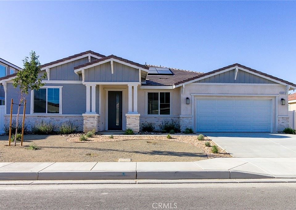 Super sharp BRAND New Construction available NOW for immediate close! Located in one of the best areas of West Palmdale/ Rancho Vista, you will love the open floorplan and massive open space feel of this great home. This home features a great kitchen with a huge quartz island with breakfast bar and stainless appliances. The family room features a great gas fireplace. The primary suite is large and comfortable, and the primary bathroom features dual vanities, separate tub and shower and a giant walk in closet! This home is located in a great neighborhood within walking distance of schools, and still has great access to shopping and the freeway.