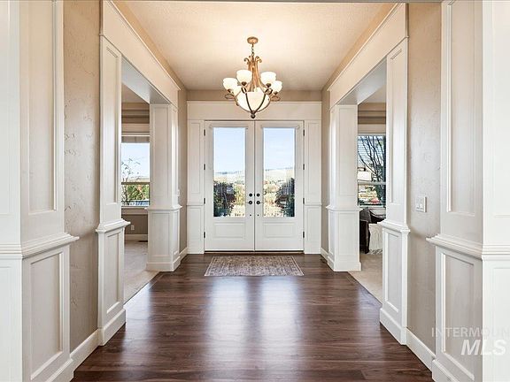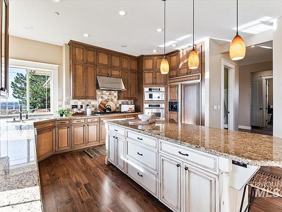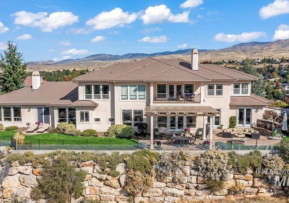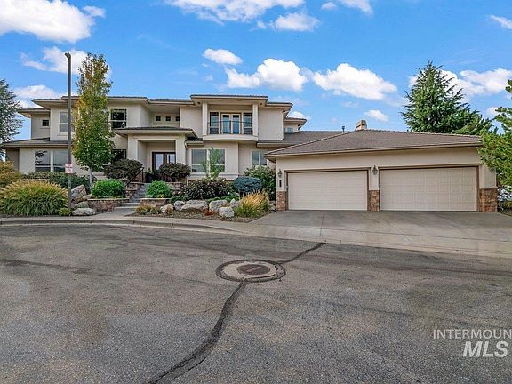 Experience luxurious living in this exquisite 5-bedroom 4.5 bath home, boasting of 6940 sq. ft. of unparalleled quality that sits on a .34 acre lot at the end of a private cul-de-sac at the base of Mother Nature's outdoor playground. With full stucco and tile roof, this home is designed for low maintenance. Because of this location, which is 5 min to downtown Boise, this home has views out every single window. Step inside to discover the elegant walnut hardwood floors and a private master suite that features a lavish bathroom, complete with a walk-in shower and a two-person soaking tub, taking total advantage of the amazing city views. A true retreat. This home features 3 gas fireplaces, a second kitchen upstairs, oversized bedrooms with walk-in closets, and en-suite bathrooms for guest and family members to enjoy. Enjoy the outdoor spaces, including a covered patio out front that overlooks Bogus Basin and Table Rock, and the backyard oasis with a stone fire pit and a 12-foot built-in water feature. All the major components have been updated or replaced. 3 newer 99% efficient furnaces and central air units, and 75 75-gal water heater with constant recirculating pumps. When you open your 4-car garage doors, you have direct access to the foothills trail system to enjoy thousands of acres of Mother Nature's playground. Homes with this location and views rarely come on the market!