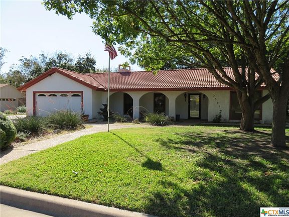 This stucco home has a unique red tile roof like no other in Temple, and distinguishes this home from all others. Three bedrooms, 2 baths, two living, two dining, two stoves, and a kitchen with storage galore. A living-dining room on one side of the house, and a fireplace in the family room, built-in bookcases with a desk, and a display case for your special treasures. Triple panel/French door opens to the backyard. Three bedrooms with long windows in each room for a spacious feel. Fireplace in the master bedroom, two dressing areas, and two walk-in closets, plus a bay window area which overlooks the backyard. In-house vacuum, intercom, and laundry room with sink and an exterior door. The backyard has an in-ground pool and the yard has huge live oak trees. One tree has been designated as possibly the largest tree in Temple, and is certified as part of the Legacy Tree Program and a Landmark Tree for the City of Temple. Large RV parking. This home has lots of possibilities.
