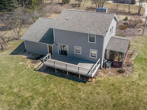 Extensively updated 3 bed/2.1 bath on 9 acres with a pond and pole barn in Chelsea Schools! Brand new siding, pillars & stone along with nice landscaping welcome you on the outdoors. Indoors you'll find beautiful new 3/4 Hickory hardwood flooring covering the main level. The spacious kitchen offers brand new stainless appliances, desk space & dining area with generous amount of cabinets. Door wall leads out to private rear deck overlooking the spring fed stocked pond & assured wildlife visitors. Living room features pretty stone fireplace & leads to vaulted 4 season porch to enjoy the scenery year round. Upstairs offers the master suite including dual closets with built in organizers & full tile bath. Two additional bedrooms with organized closets as well, share the 2nd full tile bath. Full basement with high ceilings for finishing would add plenty more living space too. 2.5 car finished garage, storage shed & 30x40 pole barn gives you all the storage you need. Enjoy the quiet peaceful country setting including the running creek & several fruit trees, while having super easy freeway access and not too far from downtown Chelsea and all it has to offer.Taxes and acreage are the sum of 2 tax id's combined including F0620200011.