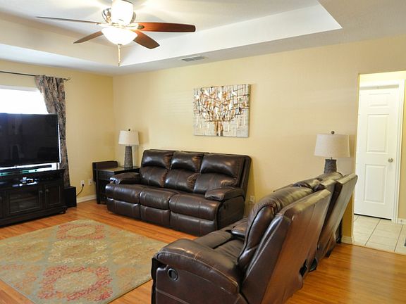 You will fall in love with this home! Located on a large corner lot, this home has it all! The flooring has recently been updated! The split floor plan offers open concept living with a large dining area and a bonus space! The spacious kitchen offers plenty of cabinet space and stainless steel appliances! The master en suite has a jet tub and his and her closets! Laundry will be a breeze since the washer and dryer stay with the home! Oh and wait until you see the backyard! It is perfect for entertaining and there is even a storage shed that conveys with the property! This home is priced to sell and won't last long!