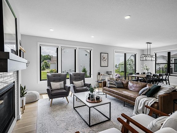 Located in a highly sought-after St. Michael community, this stunning two-story showcases top-tier craftsmanship and modern design. From its eye-catching curb appeal to the 10-foot garage doors and oversized black windows, every detail shines. Step inside to an open-concept main floor featuring engineered hardwood, a gourmet kitchen with double ovens, and a massive island — all bathed in natural light from the 8’ Pella sliding door. Upstairs, enjoy plush upgraded carpeting and a luxurious owner’s suite with a spa-inspired bath, complete with a walk-in tile shower and a spacious closet conveniently connected to the upstairs laundry. The finished lower level offers a second family room with a dry bar — perfect for entertaining — plus generous storage throughout. Tech-savvy buyers will love the whole-home Wi-Fi setup, ideal for remote work. Outside, enjoy the community pool, playground, and picnic pavilion just steps away. With nearly $50,000 in premium builder upgrades, this home is move-in ready and sure to impress!