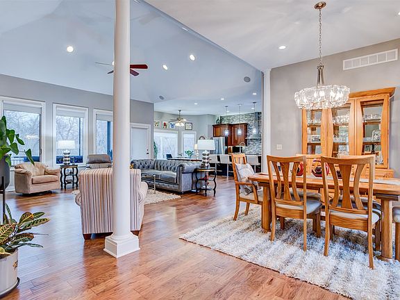 Gorgeous Ranch situated in the Oaks Golf Community with Mature trees, dry creek, wild life, large patio and privacy. 4 bedrooms plus an office, 3840 Square feet of remodeled space. Extremely high Ceilings makes this open floor space feel massive! Walk in to Windows, and Lush views everywhere! Living Room Boasts a full wall built in for entertainment and the TV and Mount stay! Formal Dining Room. Dine-in kitchen with all the views and Spacious Granite Island for Entertaining and Cooking. Appliances new in 2017 and all new backsplash countertop to ceiling and a dream walk in pantry. 18x 14.8 Master with a door to the screened in Patio/Deck, with a gas line for your grill. Large en-suite with walk in shower and closet! Double sinks and a private toilet room and a private vanity room(previously a laundry room and hook ups are still behind sheetrock). Main Floor Office with Glass French doors. Full Finished view out Basement with a cozy fireplace and bar. 3rd Full Bathroom and 2 more bedrooms both with walk-in cedar closets! HUGE Laundry and storage.