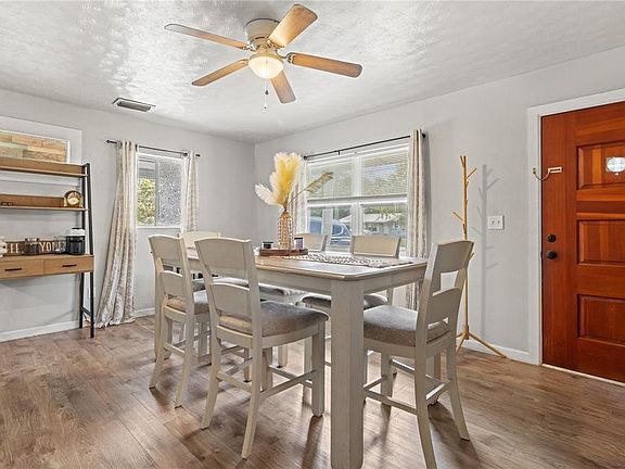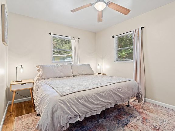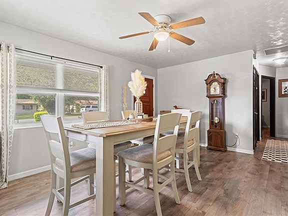 Welcome to this especially charming concrete block NE Ocala home, just a minute from the newly renovated Pearl Britton Plaza! Purchased just 2 years ago, this adorable home has been well cared-for, is move-in ready, and offers a few surprise features adding to its desirability and functionality! As you drive up to your new home, notice the 2018 metal roof, and fully fenced yard with double front gates for your security. The huge concrete pad is perfect for multiple cars to park out front. The front porch is covered, sits on concrete, and is a lovely spot for dual chairs and a table- think early morning relaxation with your favorite coffee in hand. Your cozy home offers durable luxury vinyl plank flooring, running throughout the entire space- no carpet to fuss over here! The front living room is filled with lovely natural light and measures 16x12 feet- it is currently being used as a beautiful dining space. You'll find three bedrooms plus a full bathroom down the hallway. The largest bedroom at the end of the hall measures 12x11 feet, can easily fit a King-sized bed and offers ample closet space; the owner's primary bedroom oasis. Two more bedrooms sit on either side of the hall, plus a full bathroom with step-in shower. Beyond the living room sits the kitchen which boasts 42-inch wooden kitchen cabinetry, a pantry closet, stainless steel Frigidaire appliances, a beautiful backsplash just beyond the stove, and an access door leading to the carport. The kitchen also spills into the BONUS SPACE. This is a 2nd living area, currently being used as a family room, measuring 19x14 feet, fitting an oversized sectional and reading nook. This BONUS space offers a walk-in closet, and the 2nd full bathroom. Need a 4th bedroom for your family and guests? This could be your HUGE PRIMARY SUITE! So many options here: keep it as a family room for a second living space; or, make it an amazing office or entertaining space. Just off of this BONUS space is the remodeled bathroom sitting on tile, with granite vanity top, and step-in shower with seating. The exterior door leads to the private backyard. Outdoors, the shed conveys and offers a newly-built wooden ramp for easy access to your storage items. NO HOA/ NO RESTRICTIONS; METAL ROOF (2018), HVAC (2012), Tub to Shower Replacement (2022). We can't say enough about this affordable & adorable Ocala home- so close to employment opportunities, medical facilities, fun activities including downtown Ocala's offerings, and shopping and dining to fit your needs. You could be here before it's time to decorate for the Holidays! Make it yours today!