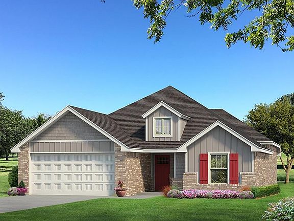 This Drake floorplan features 1,745 Sqft of total living space, which includes 1,550 Sqft of indoor space and 195 Sqft of outdoor living. This lovely home offers 3 bedrooms, 2 full bathrooms, 2 covered patios, a utility room, and a 2-car garage with an in-ground storm shelter installed. The living room presents 10' ceilings with a ceiling fan, large windows, Cat6 wiring, wood-look tile, and a stacked stone surround gas corner fireplace. The elegant kitchen features a large center island, custom-built cabinets to the ceiling with glass and lights in the uppers, a corner pantry, stunning pendant lighting, more wood-look tile, stainless steel appliances, upgraded tile backsplash, and 3 CM countertops. The primary suite supports a sloped ceiling detail, windows, a ceiling fan, Cat6 wiring, and our cozy carpet finish. The prime bath holds a dual sink vanity with framed mirrors, a free-standing tub, a private water closet, tile flooring, a walk-in shower, and a HUGE walk-in closet. Head outside and enjoy the covered back patio has a wood-burning fireplace, a gas line, and a TV hookup. Other amenities include our healthy home technology, a tankless water heater, R-44 insulation, an air filtration system, and more!