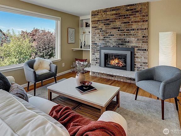 Sunlit Northwest two-story home in coveted Richmond Beach neighborhood. 2,650 sq ft, 5 bed, 2.5 bath on a 9,140 sq ft landscaped lot with RV/boat parking. Hardwood floors, recessed lighting, and abundant natural light throughout. Living room with gas fireplace and built-ins. Updated kitchen features quartz counters, cherry maple cabinetry, bar seating, and stainless steel appliances. Main floor bedrooms with built-in desks; remodeled baths with modern tile. Lower level provides secondary living with family room, gas fireplace, flex space, two bedrooms, guest bath, and large laundry room. Close to Puget Sound, trails, shopping, and top-rated schools.