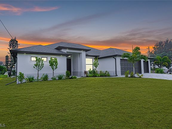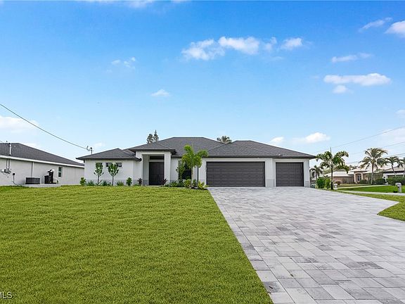 Experience the ultimate Florida lifestyle in this brand-new construction home! Boasting 3 spacious bedrooms plus a versatile den, 2 full bathrooms, a generous 3-car garage, and a gorgeous screened-in pool, this residence offers comfort, luxury, and convenience in a sought-after Cape Coral neighborhood. As you arrive, a pavered driveway, lush landscaping and a walkway lead you to the impressive double-door entry. Step inside to discover a bright, welcoming foyer featuring soaring ceilings and beautiful tile floors that flow throughout the home. Three sets of sliding glass doors frame a postcard-perfect view of the sparkling pool, exterior kitchen with BULL appliances and pavered lanai, providing the perfect setting for relaxation and outdoor entertaining. Designed with culinary enthusiasts in mind, the kitchen showcases upgraded, soft-close cabinetry, gleaming granite countertops, stainless steel appliances, and a spacious eat-in breakfast bar. The master suite is a private retreat, featuring two walk-in closets, dual sinks, and an oversized walk-in shower. A convenient pool bath provides easy access for sun-soaked afternoons by the water or lively weekend barbecues. With its modern design, pristine finishes, and ideal location close to shopping, dining, and recreational amenities, and the brand new this home makes an outstanding vacation rental investment or a personal slice of paradise in one of Cape Coral’s most rapidly growing areas.
