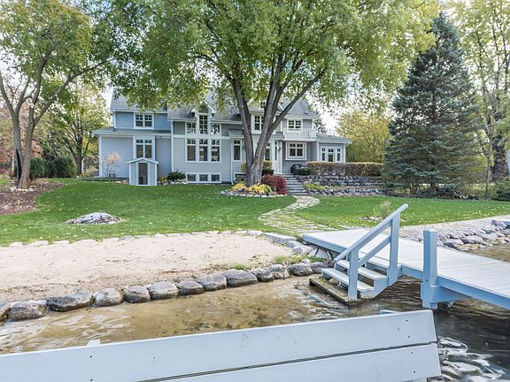 There is so much to love about this lake home! And the glorious views of the lake at sunrise and sunset and all throughout the day from every room is just the beginning! Add to that a desirable 113 ft. of frontage with sandy beach and picturesque grounds with patio, gorgeous gardens and stone paths for a premium lake life setting. The Kent Johnson custom-built home features an open floor plan for smart entertaining & abundant views, plus luxe touches in every space including limestone tile, maple floors, cherry cabinetry, granite counters, Viking appliances, radiant heated floors, smart lighting and more! Exposed LL with kitchenette and full bath is convenient for all the in and out of lake days, including freshening up after a full day on the water. Immediately available!