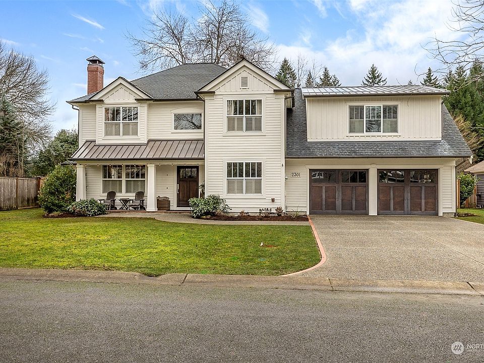 Rare 6-Bedroom Buehler-Built Remodel on pretty Old Orchard cul-de-sac has yummy creme color story & newer metal accent roof for high curbside appeal. Rich hardwoods under Restoration Hardware chandeliers flow thru over-3000sqft of graceful flexible spaces. Vaulted main-floor BR/bonus rm option w/separate entry to stunning skylight covered patio overlooking new-fenced lawn on large, almost-1/4 acre lot. Peninsula seating in Kenmore Pro gas range kitchen, 2 fireplaces, home office/den on main, plus 5 more upstairs bedrooms & bonus w/climbing wall. Primary suite with 4pc bath & walk-in. Heated garage w/shop bench space & welcoming covered porch. Strolling distance to popular McGrath & Watershed parks & 5 mins to I-5. Pioneer/WMS/OHS schools!