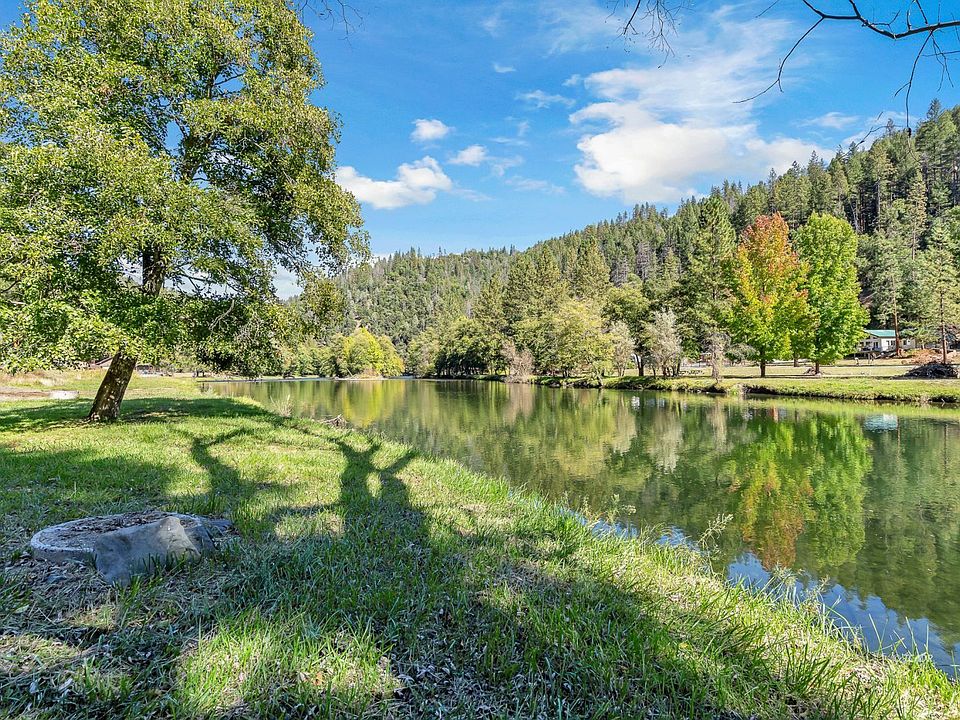 Little Cottage on a Mirror Polished section of Trinity River. You won't find a more picture perfect, relaxation inducing, goose preened lawn section of the Trinity River... and remarkably this cottage on just over 1ac could be yours. Imagine sitting by the firepit watching trophy fish disturb the otherwise glass-smooth water surface to grab bugs. Witness summer showers create mist that settles in strata layers and flows down the canyon like a 2nd hovering water body. One can pull their kayak a few feet from garage to river's edge and walk right in for an impromptu afternoon adventure. This little place could not be in a better location, but about the house; It's a cozy little cabin available furnished or unfurnished, equipped with electronic entry door (AirBnb ready), large covered / enclosed outdoor spaces, dual insulated windows, refreshed bathroom, electric Heat/AC split unit, brand new well components and filters (including UV), efficient kitchen and the carpets have just been shampooed. The home is move-in or rental ready with a nearly care-free yard and vibe. A double-wide detached garage offers extra space or other creative future use options. Green lawn one step from the water, come dip your feet in and enjoy the last slice of summer!