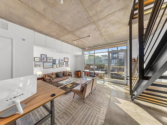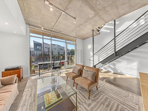 Set within the Live Oak grove once part of Mattie’s historic estate, this street-facing residence at The South 5th captures the spirit of 78704—urban yet serene, private yet connected. Crafted from solid concrete and floor-to-ceiling glass, the home balances industrial design with natural surroundings.  The kitchen, designed specifically for this residence by Herb Schoening, a former Austin interior designer, features custom walnut veneer cabinetry extending to the ceiling with vertically matched grain, honed Calacatta Gold marble countertops, a white marble mosaic backsplash from Artistic Tile, integrated Miele appliances, and brushed stainless steel hardware. The result is a refined and ergonomic workspace that blends craftsmanship with comfort.  The flexible lower level serves perfectly as a dedicated office, gym, or creative studio—ideal for professionals who live and work from home. Upstairs, the main living area is filled with natural light and leafy privacy, while the guest suite offers its own quiet retreat. The primary bedroom includes a west-facing balcony overlooking the street, offering an urban perspective and a comfortable place to unwind at day’s end.  Built with thick, well-insulated walls between units, the residence provides a rare sense of quiet and privacy within a townhouse setting. Each home also includes solar panels, contributing to energy efficiency and reduced utility costs. A fenced yard shaded by a grand oak adds a private outdoor retreat, complete with dog doors from the balconies for effortless access.  Just steps from Mattie’s on the Green, where the estate’s legacy continues with two bars and indoor-outdoor dining beneath the same ancient oaks, and only a few blocks from the new large H-E-B on South Congress, this South 5th home offers modern design, turnkey comfort, and a timeless connection to Austin’s past and present—close to Thai Fresh, LeNoir, Swedish Hill, and Once Over Coffee Bar.